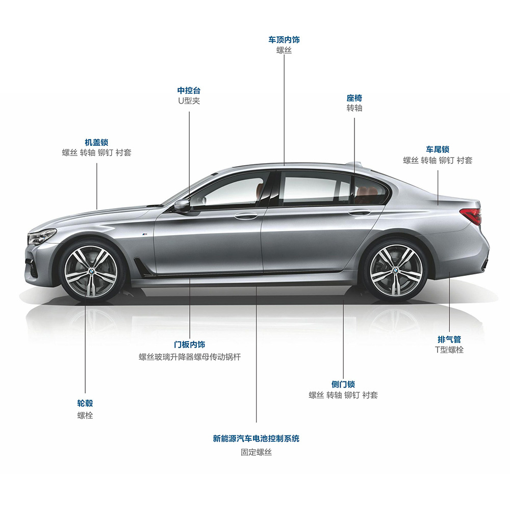 終端汽車(chē)客戶(hù)品牌:豐田,本田,日產(chǎn),寶馬….. 汽車(chē)客戶(hù)產(chǎn)品:座椅,發(fā)動(dòng)機(jī),內(nèi)飾,輪轂,新能源電池…. 涉及到的緊固件:冷鐓件,鉚釘,螺母,螺絲,轉(zhuǎn)軸….....